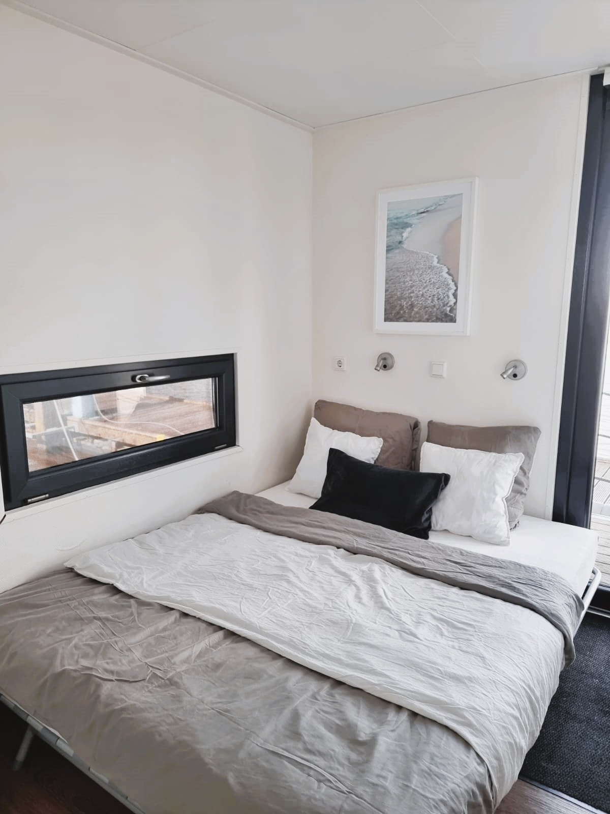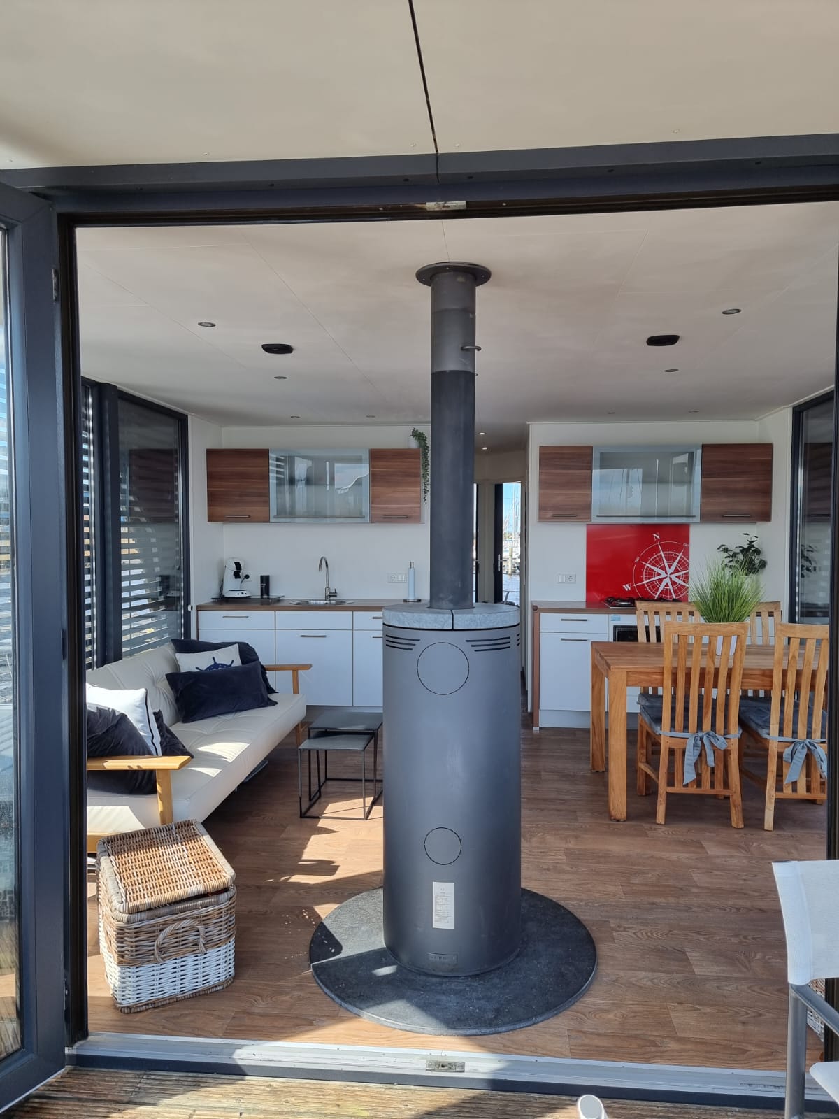 Das im Norden Hollands liegende Hausboot Hafendieb überzeugt durch gehobene Ausstattung und eine gemütliche Atmosphäre – sowohl im Sommer als auch zur kälteren Jahreszeit. Vier Personen haben hier auf 40 qm genügend Platz, um einen schönen Urlaub zu verbringen. Das Boot verfügt über zwei Schlafzimmer mit je einem Doppelbett, ein Bad mit Dusche sowie eine separate Toilette. Die offene Wohnküche lädt zum gemeinsamen Kochen ein. Ein besonderes Highlight ist außerdem der drehbare Schwedenofen im Wohnzimmer, von dessen Wärme Sie auf der überdachten Bugterasse profitieren.